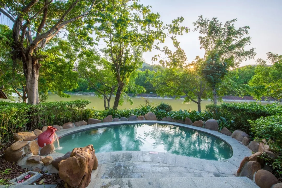 大观园温泉区共有79个功能各异的特色温泉池,设有日本风情、巴厘岛风情、南美风情、河岸线风光、岭南风情区五个浸泡区,感受真温泉沐浴滋润,共享养生调神,其乐无穷。